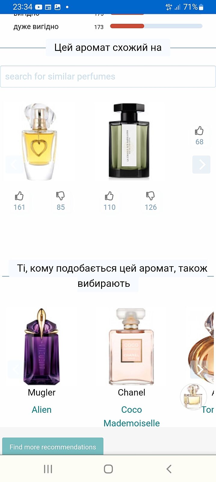 Автор, ща посиланням на Фрагрантику, що вище є і перелік ароматів, на які схожі парфуми, що описано, спустіться вниз сторінки і продивіться вправо-вліво