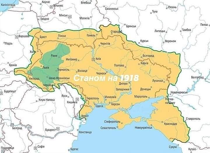 Уже часто в инете читаю ,что нужно отбивать русню и выходить на границы 18 года.трошки історії так навсяк випадок КАРТА УКРАИНЫ 1918ГОДА.