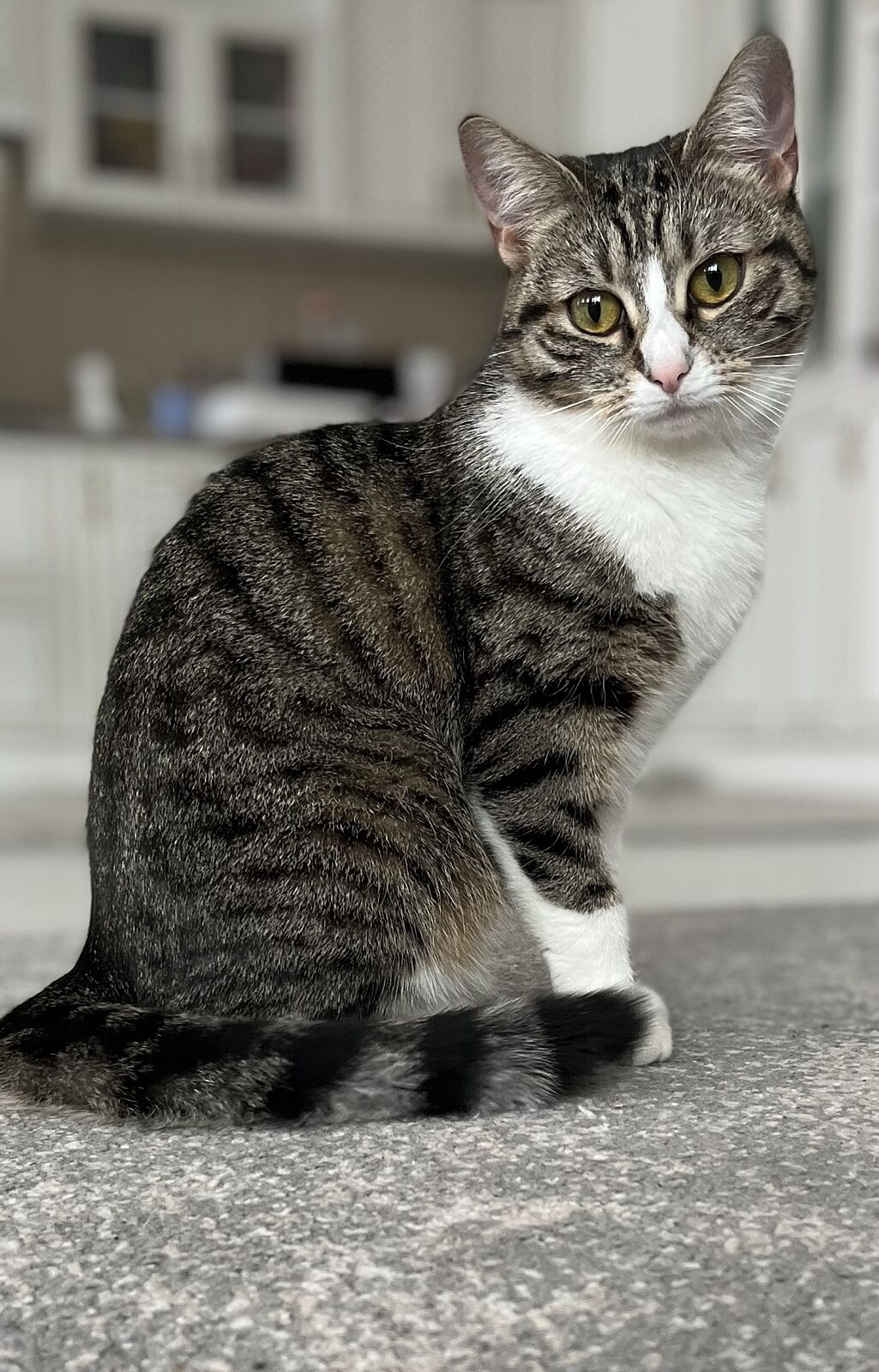 Их маму выбросили на Оболони в мусорном пакете в мусорку, беременную. Женщина услышала как кошечка плакала и забрала её,родилось 5 котят. 3х забрали ,остались 2е. Мы приехали за Томой,но в процессе волонтер начала уговаривать нас забрать и Симу. Ну мы и забрали их 2х,ровно в 4е их месяца