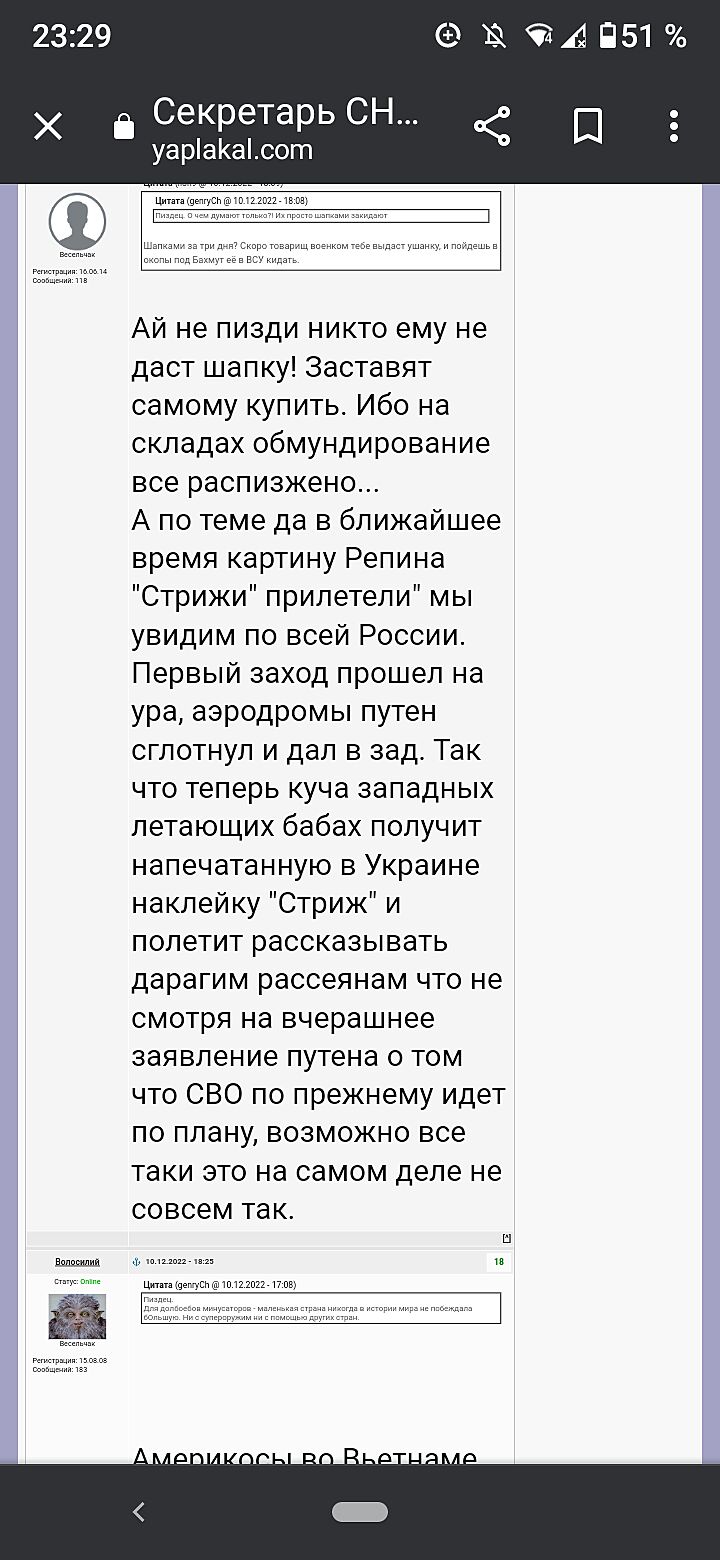 ГИРКИН ЭТО ХИТ.вернулся с окопов.плюется .расстроен,бросил войнушку и к жене.все правильство россии сказал повесить привселюдно на площади та что красная))а лаврову конскую голову отрезать.и бухают а не армия.и на задания идут абы как.и мотивации нет.и как бомжи одеты.и воевать не хотят.и зачем сдали Херсон и все остальное.а он хотел полком командовать а ему не дали.сказали -привези бронники и виски не налили.и говорит это не армия а бля.во разворованное коррупция бардель .и что б победит уважаемых киевских партнеров надо миллионы солдат и оружие как в нато и еще говорит что не пойдет больше никогда в рус армию.и готов под суд за свои слова что путин лох и вся команда его заживо повесить .и тестя его убили проклятые хохлы и что по оружию армия рф остает на 30 лет от того оружия что есть в украинцев.такого еще не было-что б он так говорил ,переходил на личности кремля и так гадил армию.сказал -проигрыш сто проц россии в этой войне.