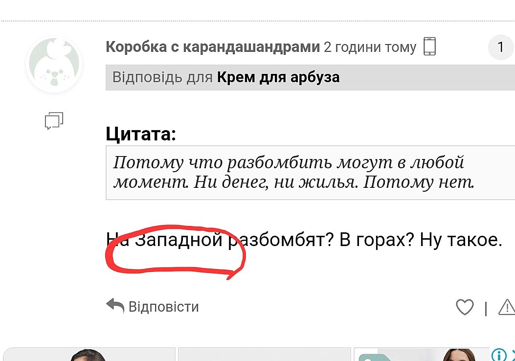 Та відчипіться вже. Одне й те саме, гірше русні. Нема з ким посваритися, як ото муха на Спаса.