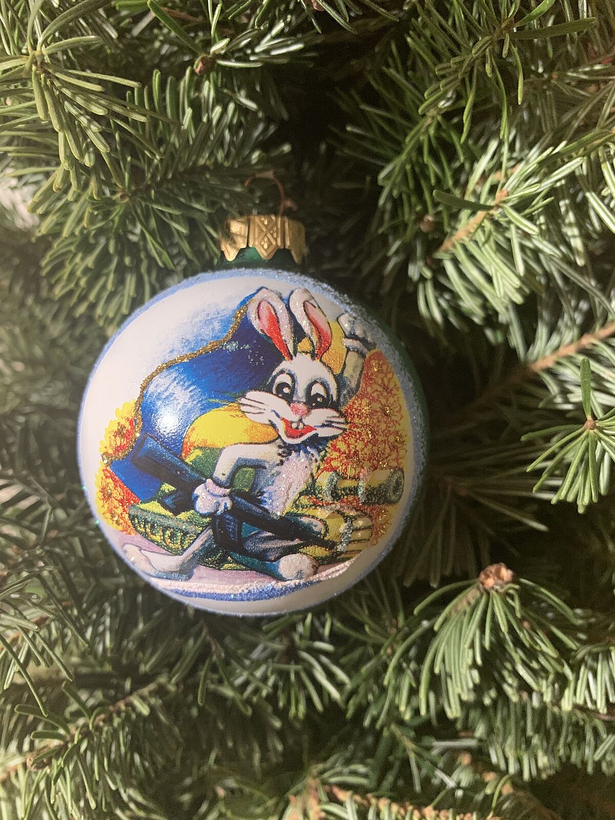 Заяц на танке с автоматом и под украинским флагом! Вперед к победе! Розовые сопли снежинок прибережем на следующий год 😉