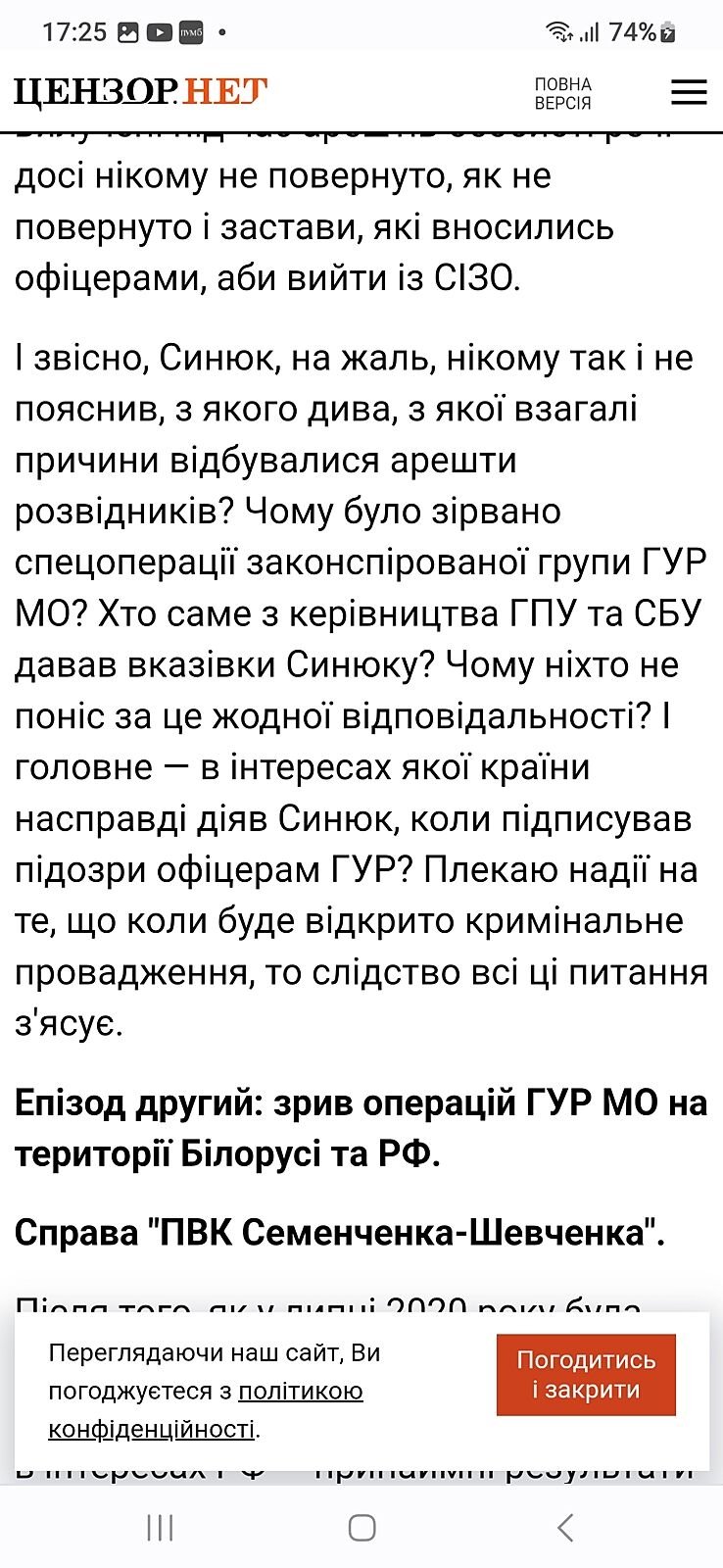 По вині Синюка були заарештовані наші розвідники, викритті на терит рф і білорусії наші агенти і ніхто не поніс відповідальність