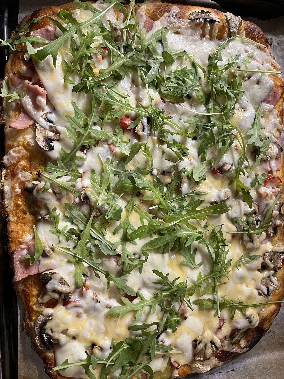 І у нас була піцца. Сходили з дітьми в кіношку, хотіли їхати ще на піццу, але на вулиці така холодрига, що швиденько додому і замовили доставку піццу і суші.