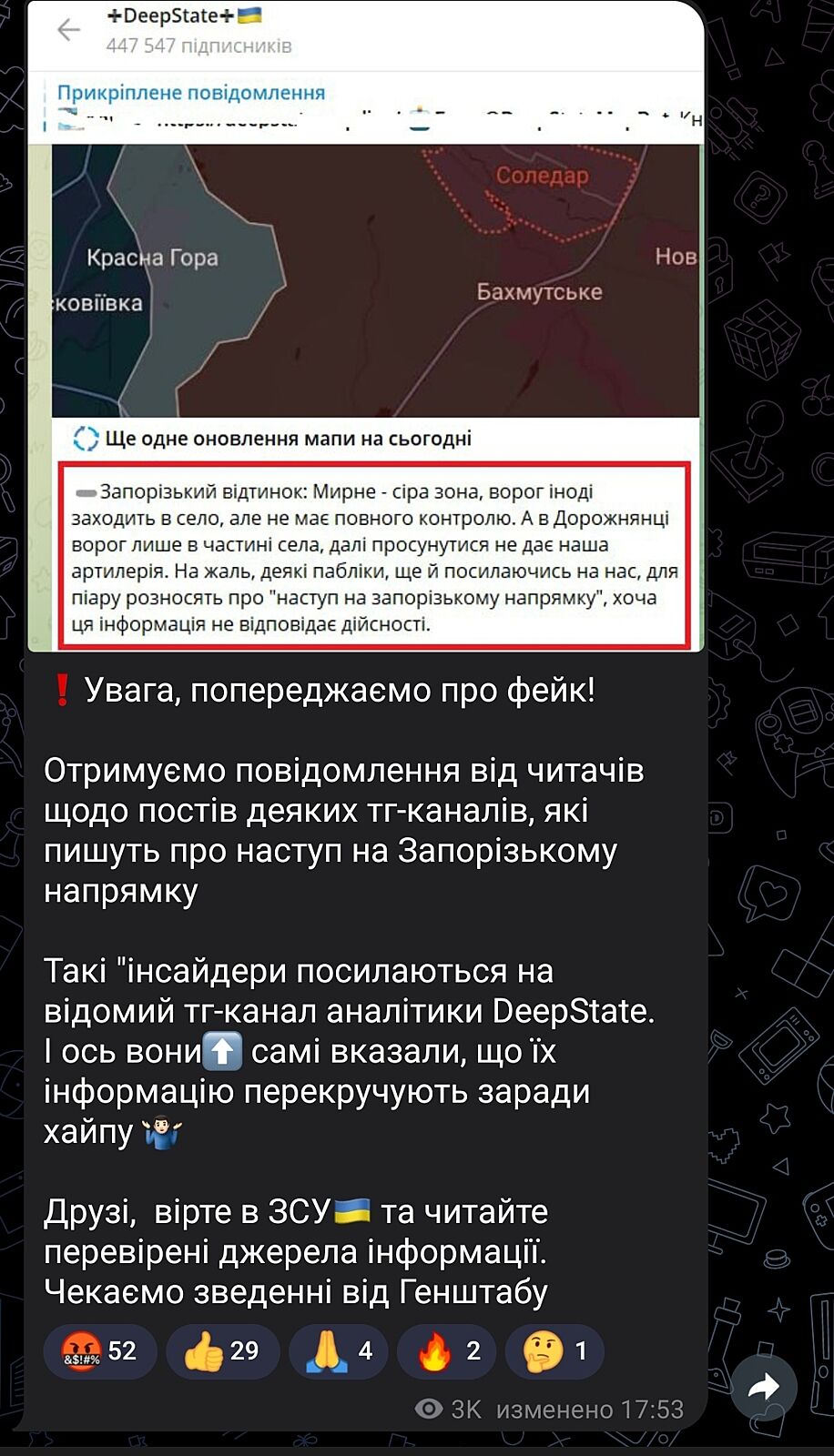 Если фейк то чего наши молчат? Если все эти дни писали ’соледар - тяжело молимся’, то чего сейчас тишина?