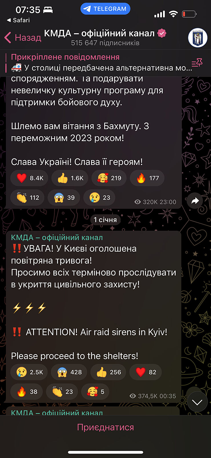 Я, як і інші дівчата вам відповідаю, що сирена звучала незадовго до півночі, в новорічну ніч. Київ, лівий берег