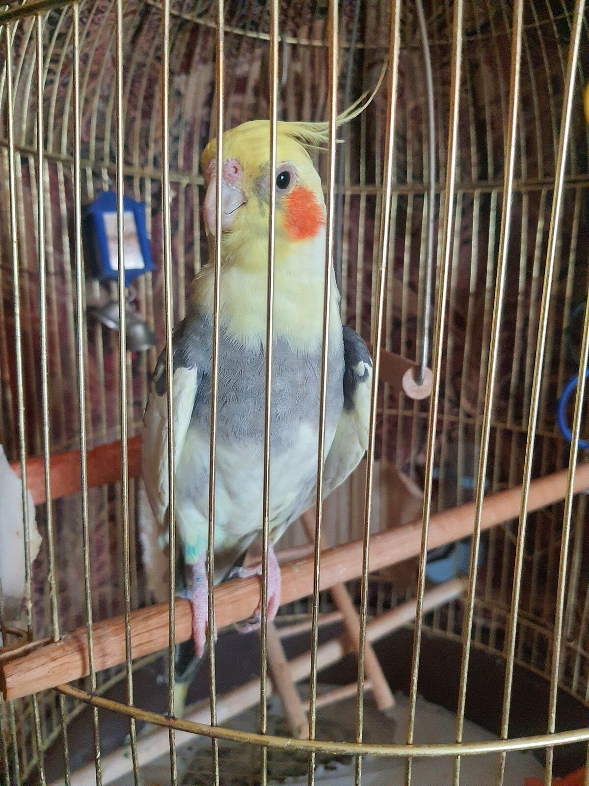 Уже тут показывала, ему 21 год или даже 22. Еще есть две собаки. Уже редко выпускаю, мало летает, собак в это время в другую комнату от греха подальше. Никаких особо забот