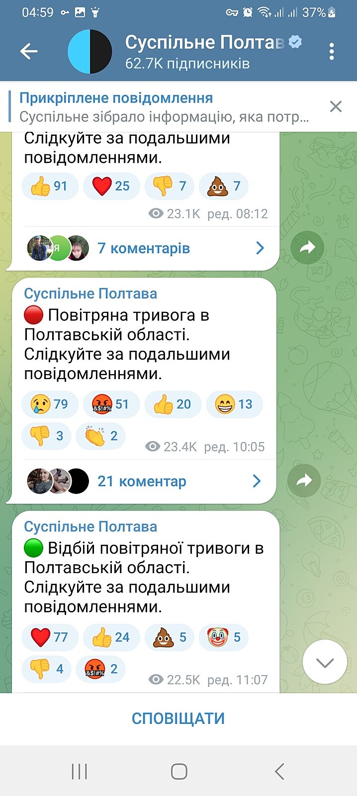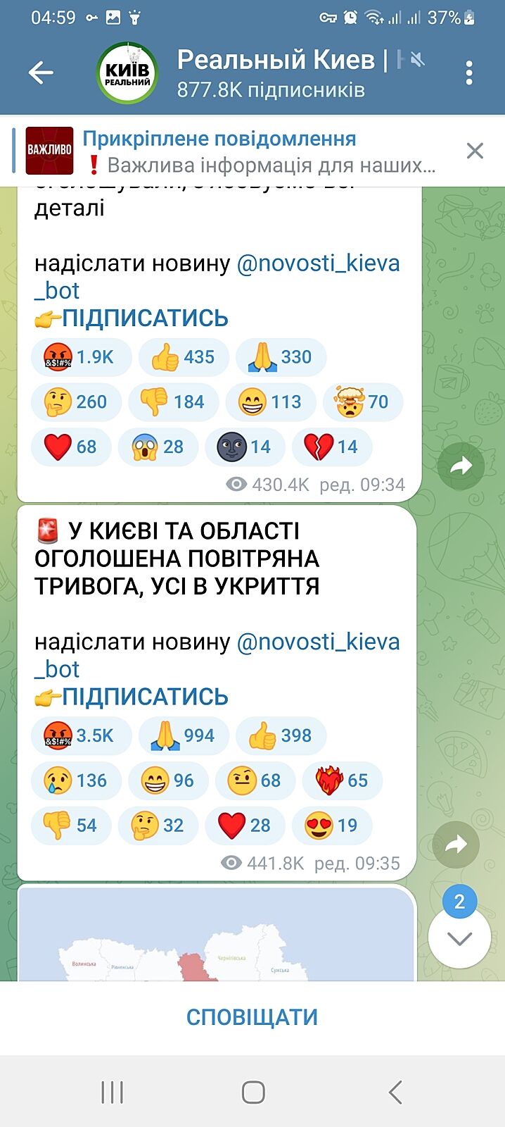 Ось з телеграм каналу , вже було в 9:36 . Тобто не з обіду, і не ввечері.