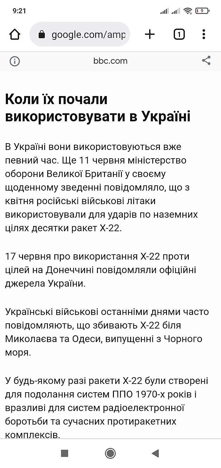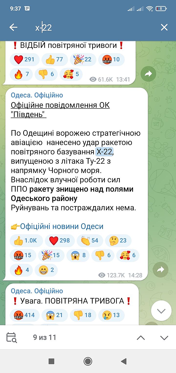 Командування Повітряних Сил ЗСУ офіційно повідомило, що Арестович - ворог, який поширює брехню, яка вигідна Росії. У прес-релізі написано саме це: ’Жодних сумнівів, що це була саме ракета Х-22 – немає. У Збройних Силах України немає вогневих засобів, здатних збивати даний тип ракет. З початку воєнної агресії росії по території України було випущено понад 210 ракет цього типу. Жодна – не збита засобами протиповітряної оборони».