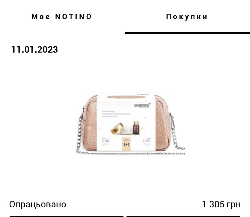 Я купила днями на нотіно крем + сироватку в подарунковій косметичці за 1300 грн. Дуже вигідна акція була порівняно з тим, щоб окремо купувати