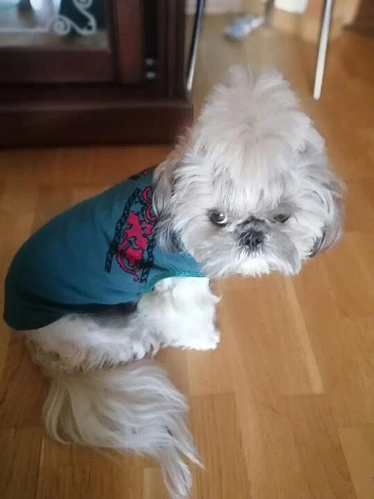 Зараз це нагадує більше набір для валяння, а не собаку. Зветься Мальвіною.Не зрозуміло де голова, тільки коли їсть, то видно, з якого боку. Купання і стрижка в умовах блимання світла трохи витіснились приготуванням їжі. Ось на фото вид пристойний, хоч без настрою. Це дуже серйозна собака, вона навіть відвертає морду і не любить цілуватись, хоча на вид мила, довгі вії і хвостики має. У мене були пєкінеси - люблю кудлатих, малих, кирпатих. От завелось таке чудовисько - ши. Слухняне, страшне просто, дітям в приклад ставлю. Нічого ніколи не псує - точно дуже серйозна мені попалась баришня.