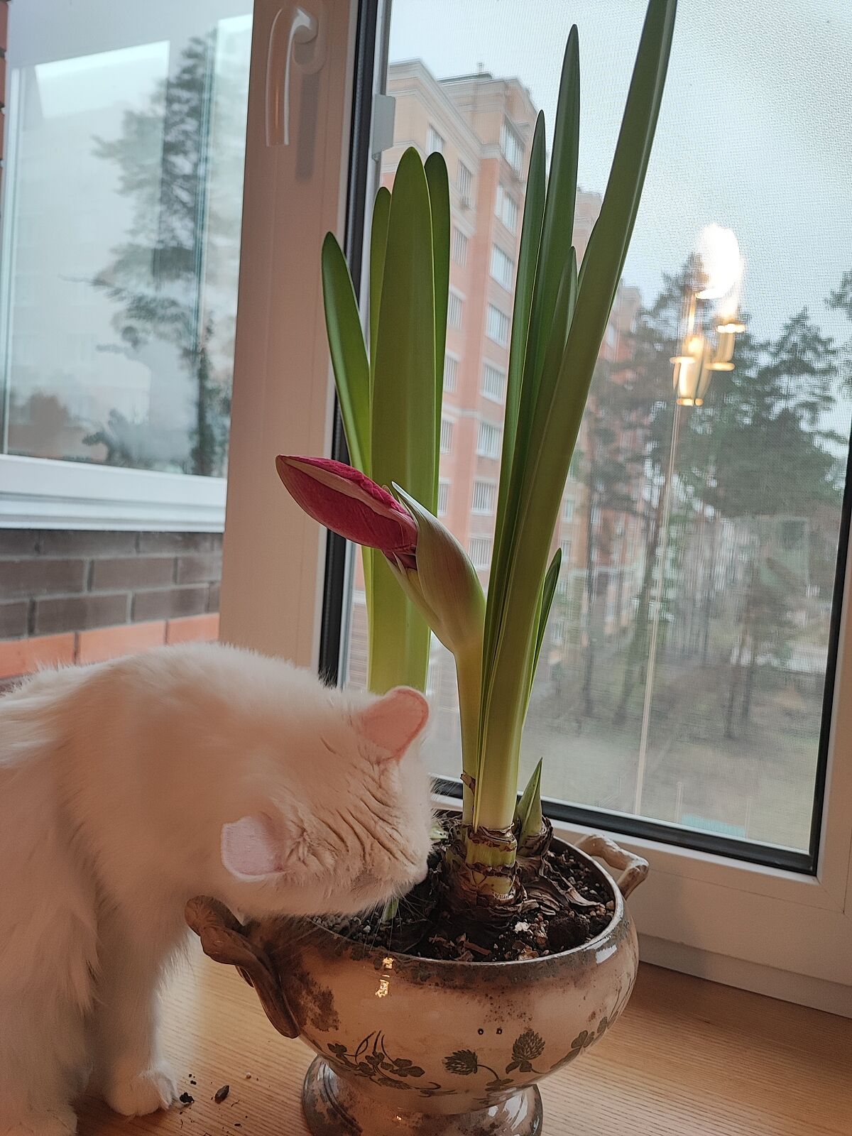 Пытаюсь хоть немного на свет выставить амарилис, она его грызет))