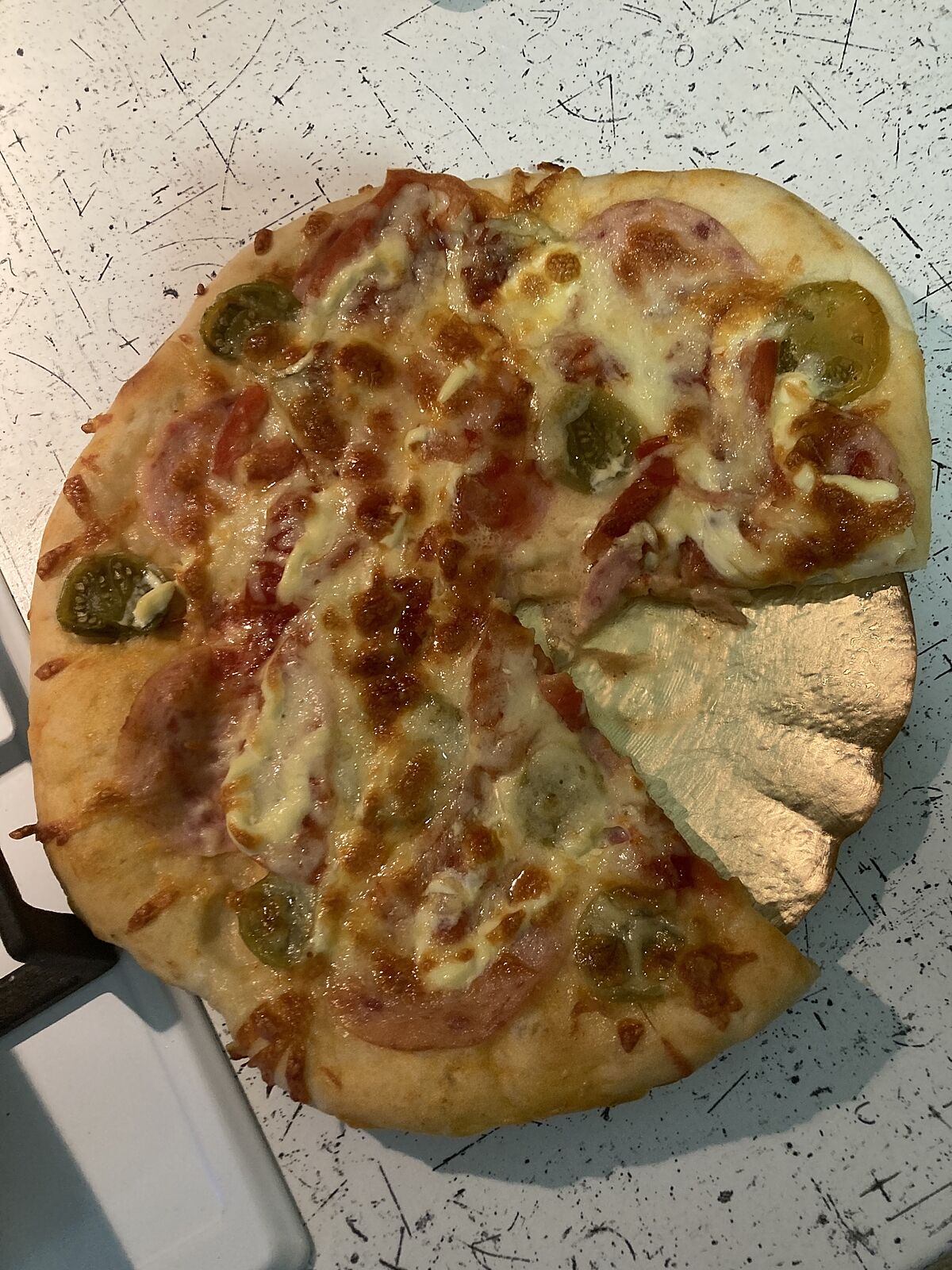 Ось і піца, вийшло 3 дека. Дякую ще раз всім, дівчатка!!! Всім, хто їсть, смачного, тихого гарного вечора.