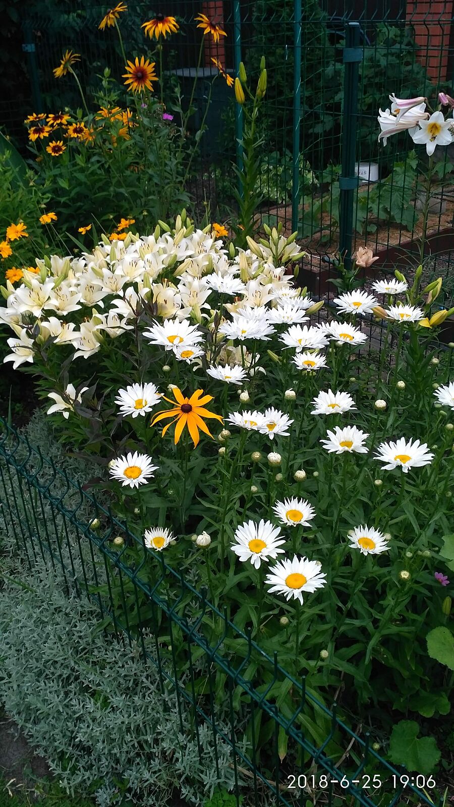 Троянди, піони, лілії, флокси, тюльпани, нарциси, айстри (морозець), морозник, хризантеми, трави декоративні, рудбекії, анемони, платикодон, первоцвіти, різні ромашки та інше. Все не згадаю. Раніше всього було набагато більше, але прийшла до висновку, що потрібно лише те, що не потребує надмірної уваги, особливо викопування на зиму. Трошки фото різних часів)