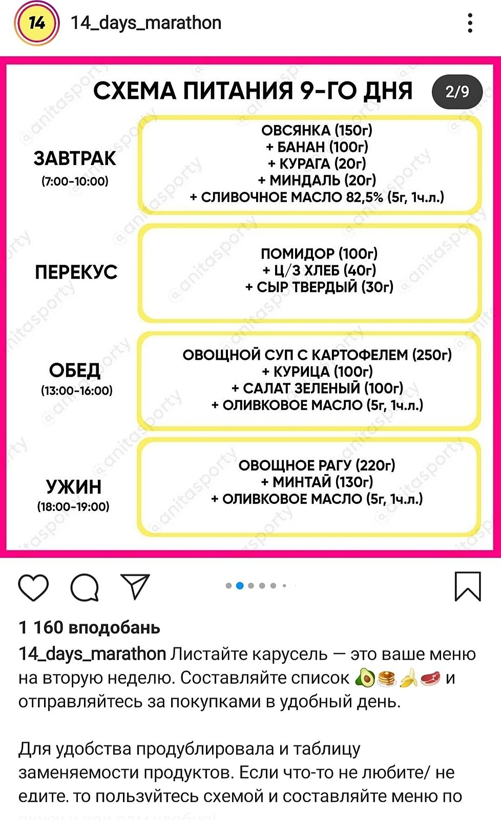 Зараз його немає. Це давно було в її інстаграмі, марафон на 14 днів. Такого плану було меню.