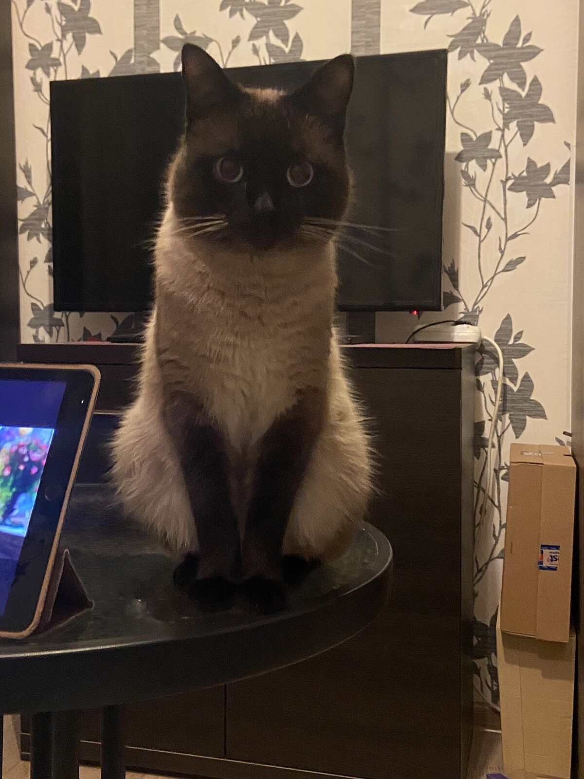 Завжди з усіма сидить. Ідемо в підвал, коли тривога, теж завжди іде до нас і сидить там .)