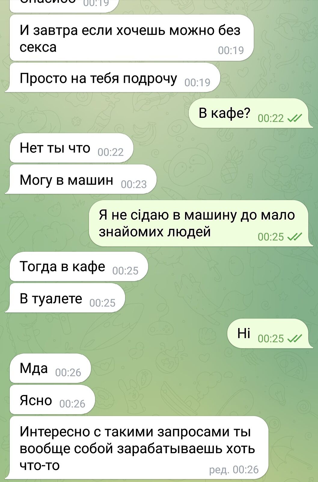 Він пропонує подрочити в вашій присутності за бабло? До чого останнє питання його?
