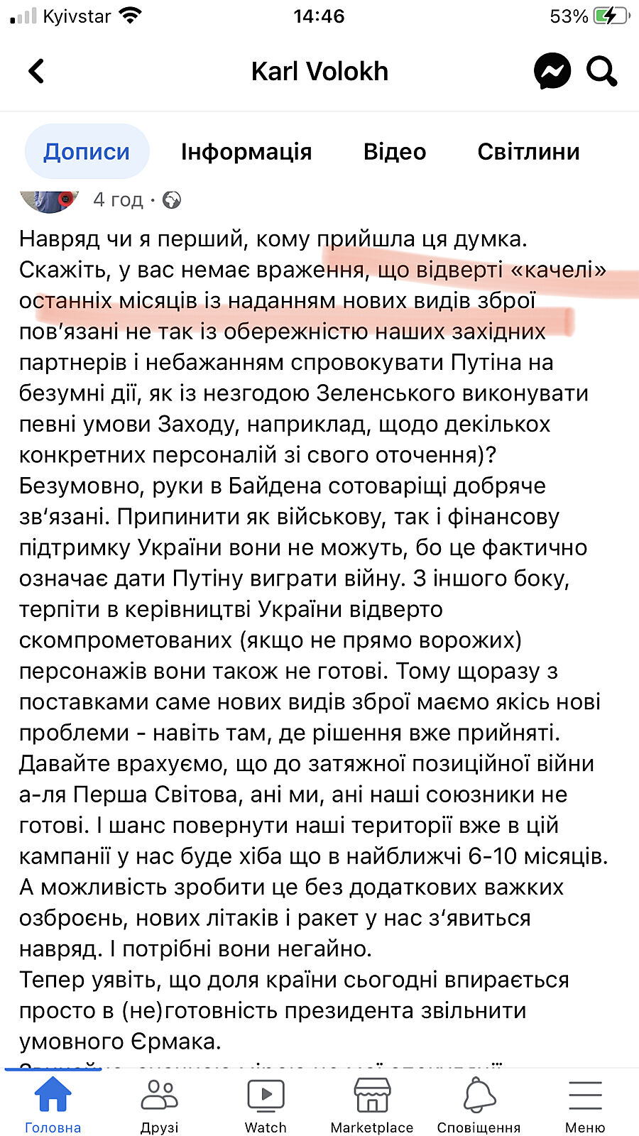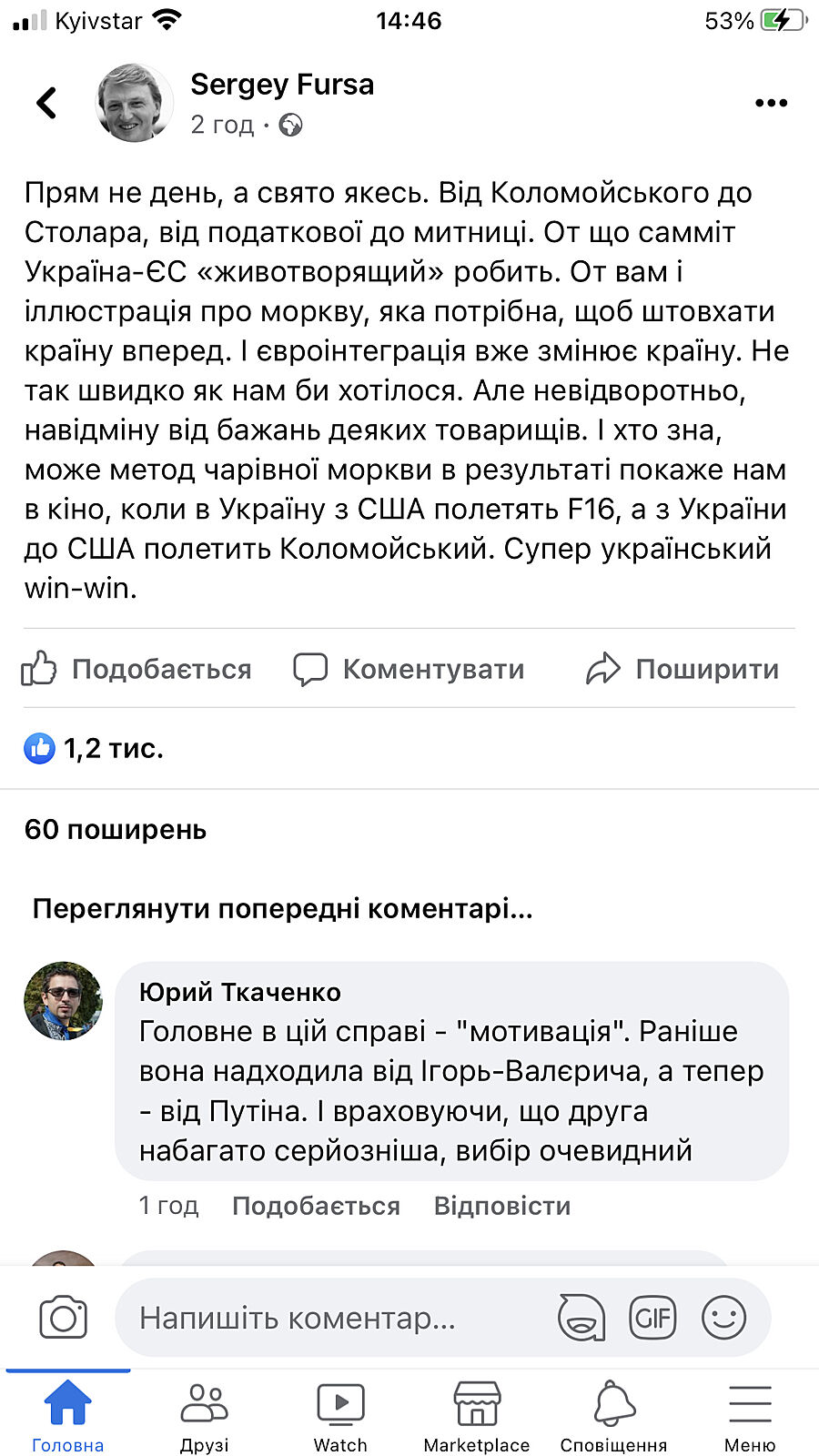 Вплив Коломойського на Зеленського на початку його президентства реально був значним. Я сам цього боявся. Ігор Валерійович напхав Зеленському у команду своїх людей. Шо логічно, бо Зеленському на початку його політичної кар´єри за великим рахунком з великих гравців було ні до кого звернутися «за порадами», та й майданчик плюсів він використав по повній. І у Коломойського історично було на Зеленського більше інфи, бо дуже довга історія стосунків.