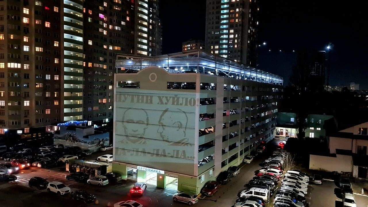 По темі -вчора син знайшов в Гугл картах в Києві, на даху будинка в Дніпровському районі величезними літерами написано, ким є пуйло.
