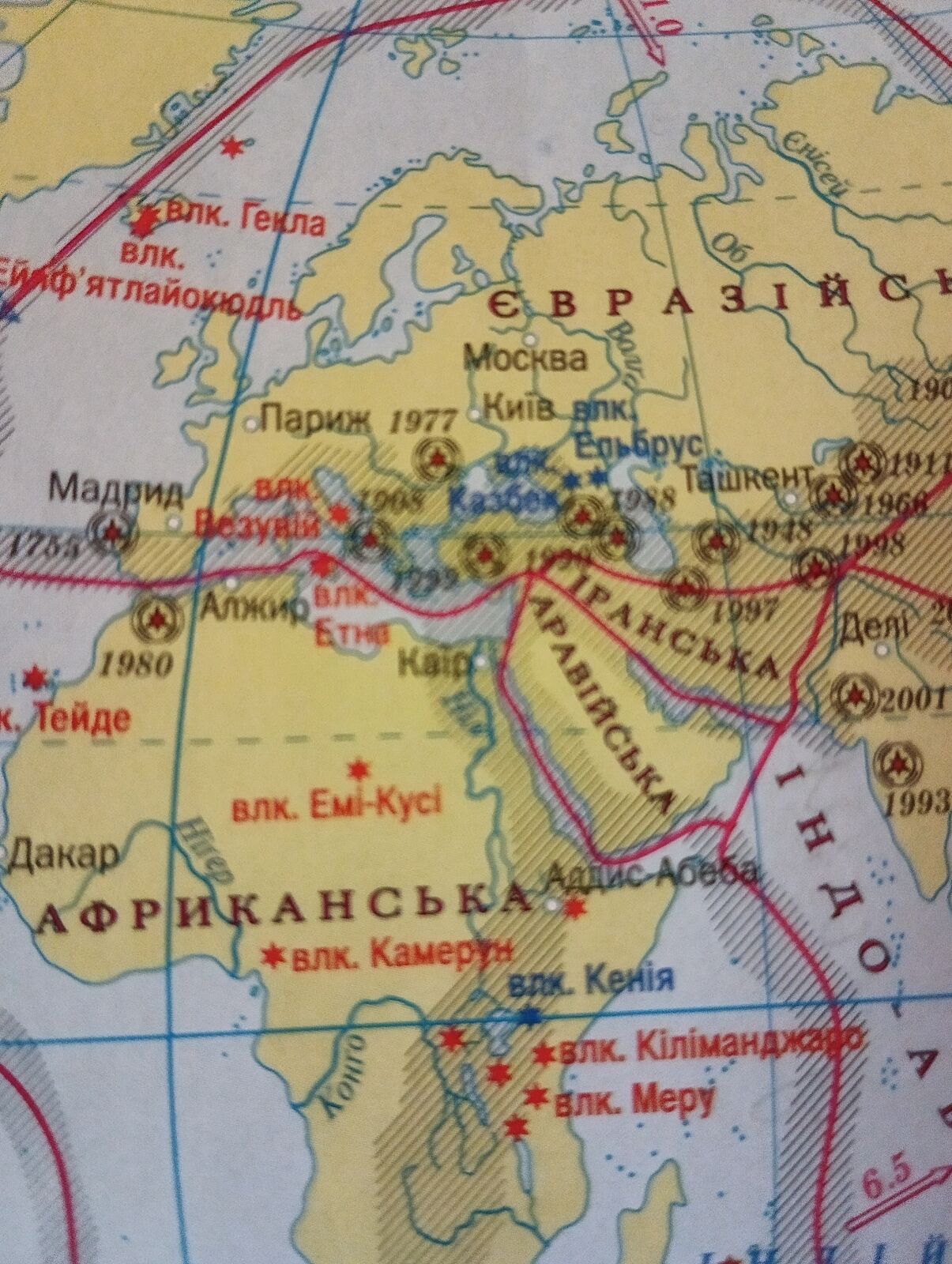 Я нашла такое в новостях. Чисто по атласу одна плита, а движение происходит ниже. В аравийской иранской вроде бы спокойно. В само движении пришла вроде именно большая Евразийская плита.