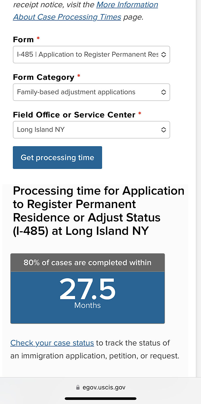 Зайдите на сайт USCIS в сервис по отслеживанию времени рассмотрения документов.