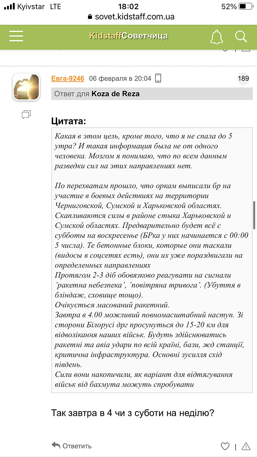 Не ведитесь на эти вбросы,задолбали уже по полной, то с графиками,то беларусь нападет,то на Чернигов-известные пЭрсоны с цифрами в нике,то со снами кумарят,то с даром предвиденья.Еще и эта вылезла с диванной военной академией.