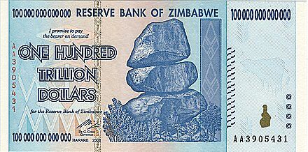 В мене навіть зімбабвійська банкнота є в 100 трильйонів доларів. Ось така.