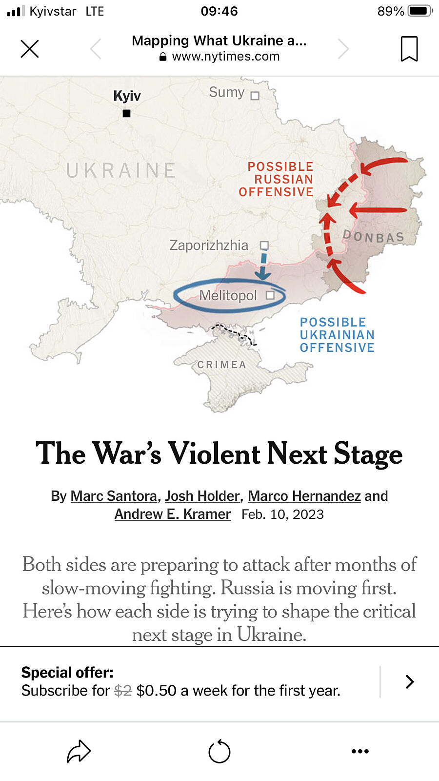 Саме російський наступ створює усі можливості для нашого контрнаступу. На одному рівні з західними постачаннями зброї. Вони вимушені наступати. Бо бояться що коли у нас буде більше західної зброї, у них все буде набагато гірше. І вони праві.