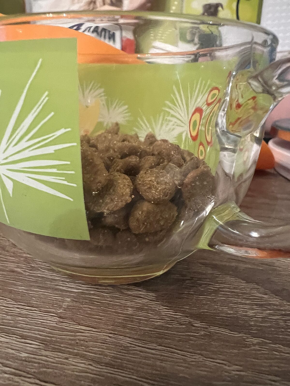 Я бы написала в чат дома, взяла весы на пару минут, взвесила порцию, пересыпала в какую-то ёмкость, которая бы стала мерной, всё.
