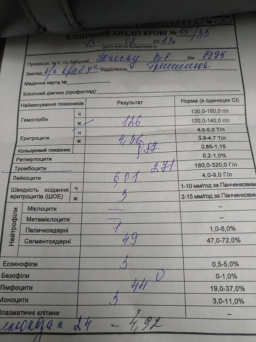Болить голова вже 4-й день ,здала загальний аналіз крові всі показники в нормі крім лімфоцитів 44% при максимальній нормі 37% . Чи є це критично і що це може означати ?