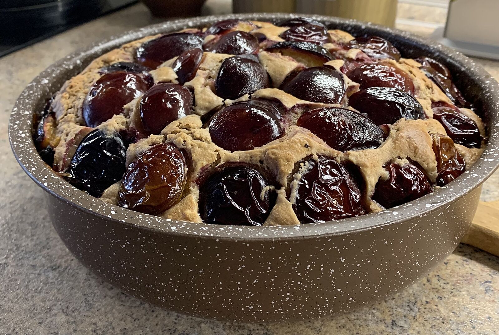 Сметана с яйцом, чуть сахара и ванильного сахара, все запекается в духовке