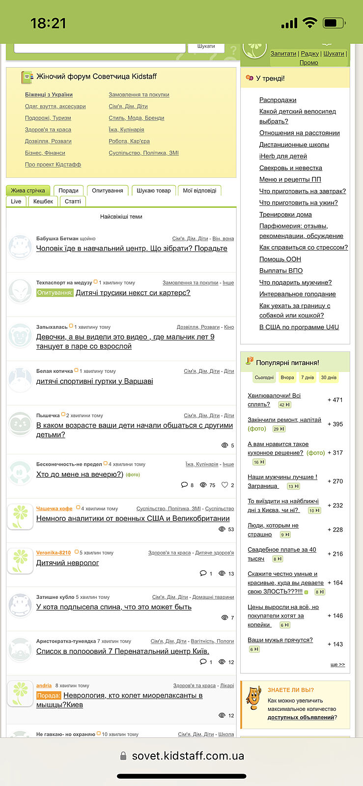 Популярные вопросы! Сегодня Вчера 7 дней 30 дней Ждуны Покровска и не только это здоровые психически люди?4+764 Вот это жесточайше вырубают свет..3+683 Що для вас зайвий маркетинг в красі2+602 Хочу купить красивый блокнот. Но не знаю, что в нем писать?)+321 Болгария это какой-то дикий совок+291 ещё