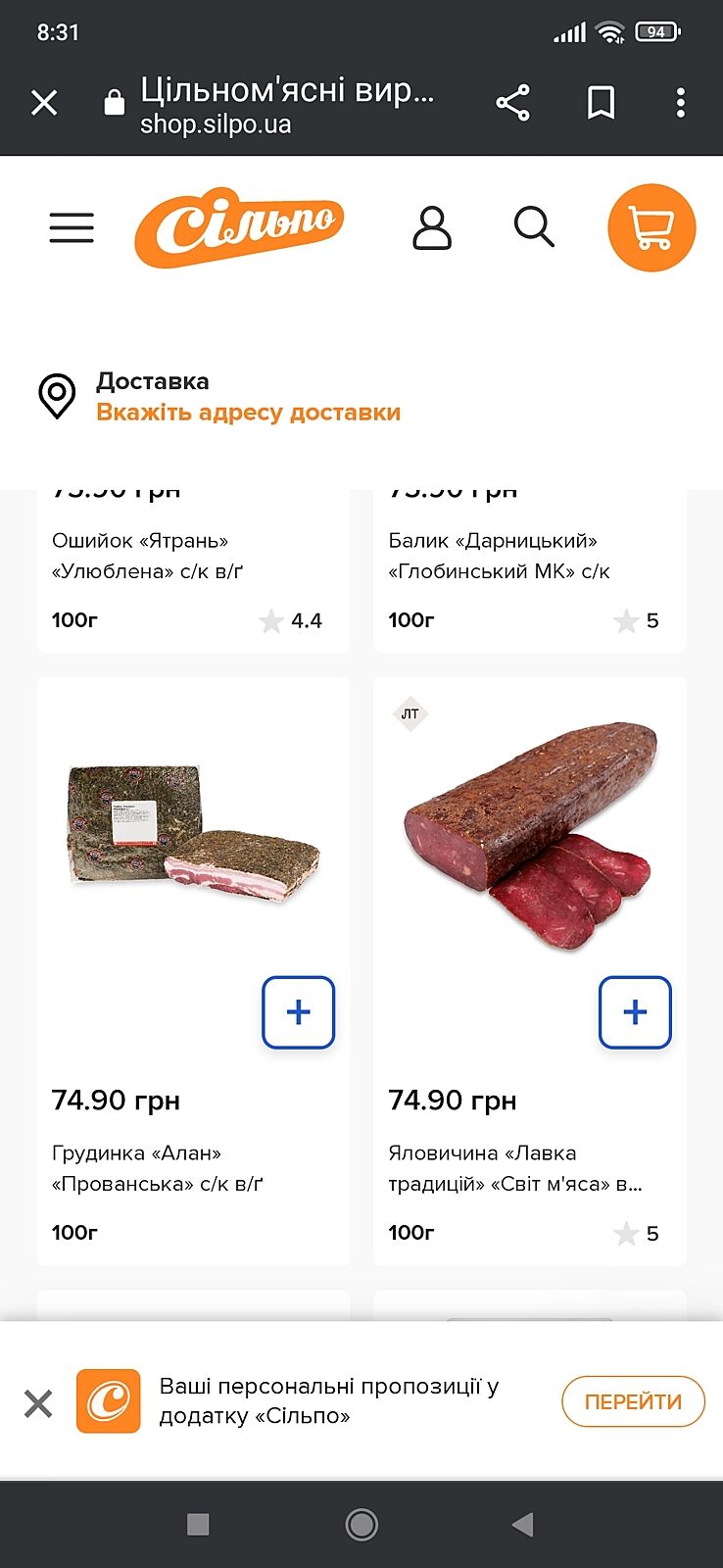 Нашла на сайте грудинку Алан, она уже по 749. Этого мяса на сайте нет.