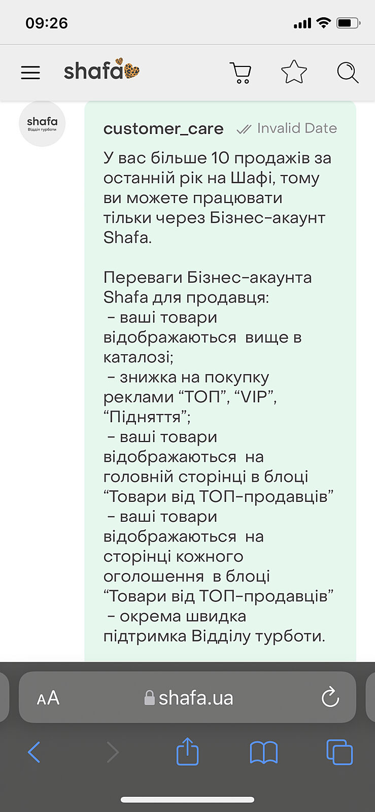 Добрый день! На Шафе раньше было так: чтобы стать «Бизнес аккаунтом» нужно было совершить более 10 сделок в месяц. Правильно? Сегодня пришло письмо счастья от них , что я уже «бизнесакк», потому что за прошлый год! у меня было более 10 продаж. Они поменяли правила? Где можно это увидеть? Кто знает?? Их проценты на проданный товар- это грабеж просто!!!