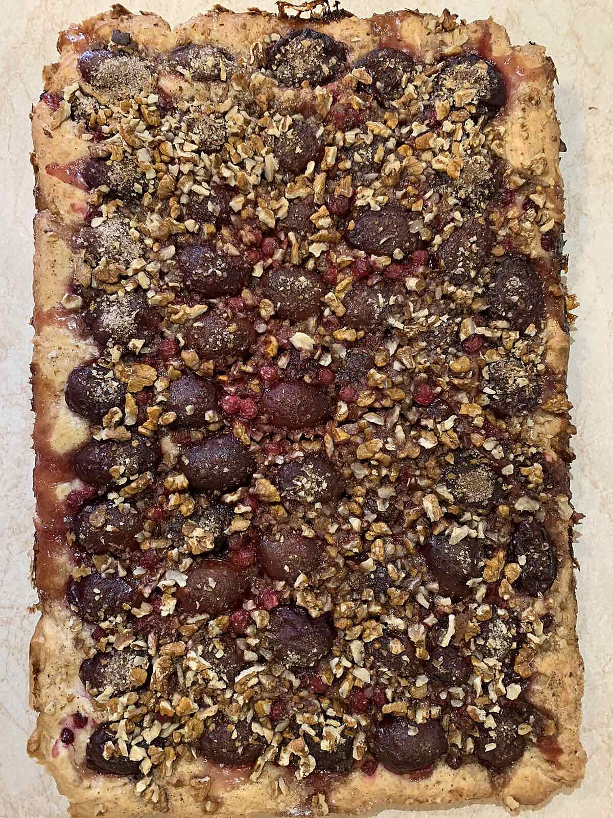 Я вчера со сливами и красной смородиной пекла, ммм, оч классный