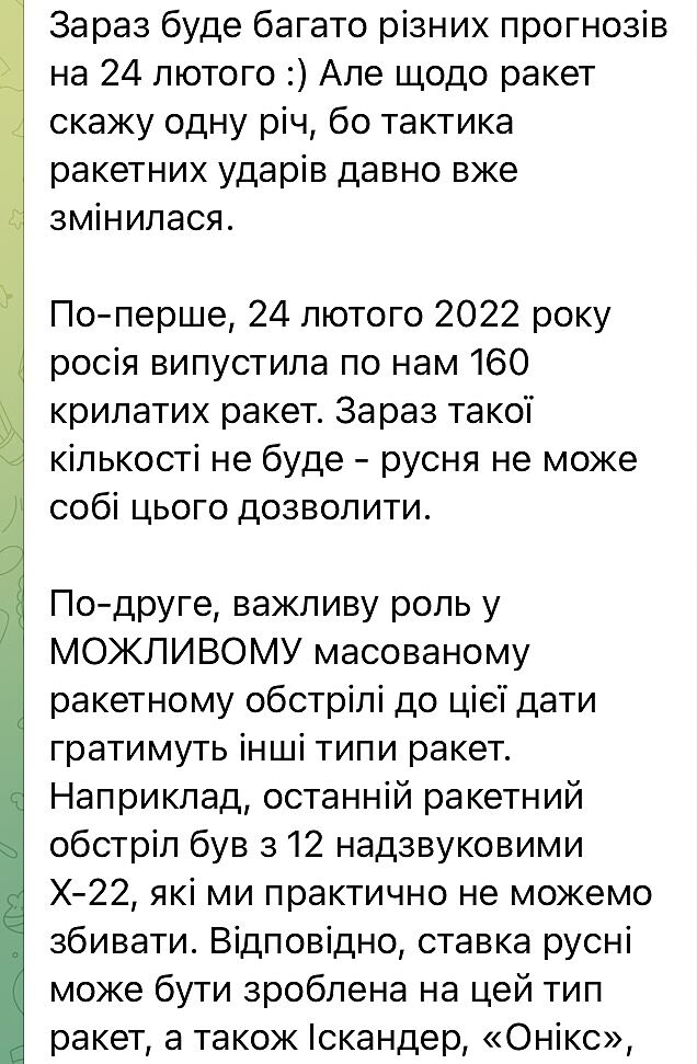 Я не знаю, що буде, надіюся нічого критичного на Київ, просто я насторожена, бо війна ще не закінчилася, а взагалі наближається,24 лютого і згадується страх пережитого.