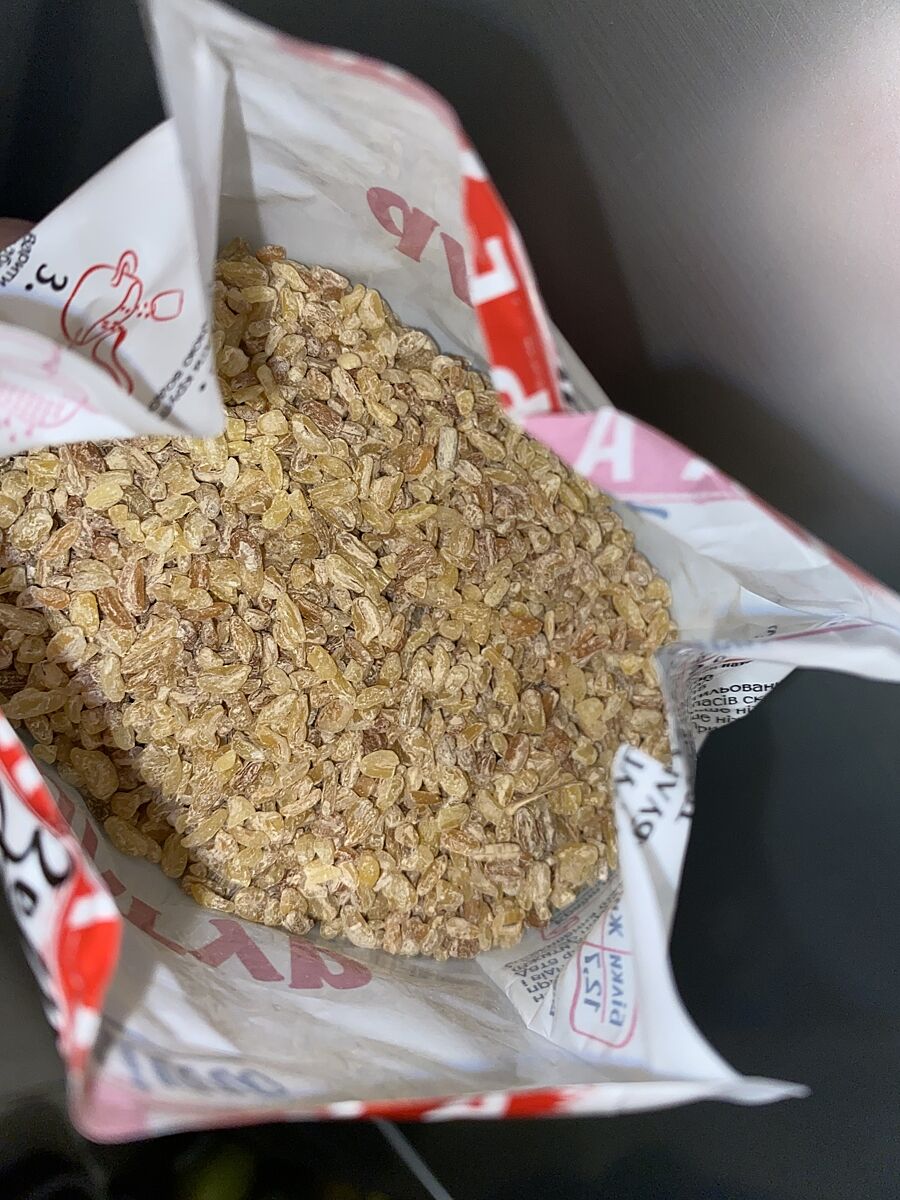 В мене був булгур маленький, а тут відкрила пачку із великим. Каша трохи іншого кольору і трохи біла зверху. Це так і повинно бути чи вона не їстівна?