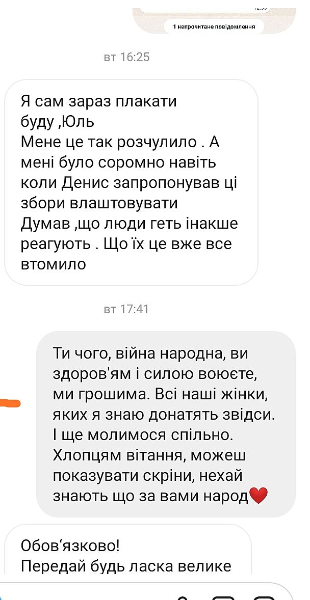 Доначу всім знайомим хто розміщує пости сумами від 500 грн. Товаришу сина скинула 2к на авто на цьому тижні, потім про нього розповіла знайомій, яка мене стригла . Вона гроші не захотіла брати попросила задонатити хлопчині. Він під Бахмутом, не хлопець а золото. Почитайте переписку. Може у вас щось розвидниться в мізках
