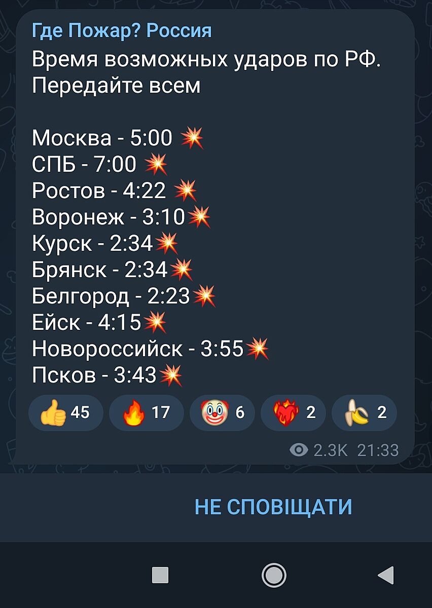 ‼️‼️‼️*З нагоди річниці повномасштабного наступу российской педирации за даними розвідки очікуємо масований ракетний удар 24.02.2023 р. Відомо про вихід двох носіїв КР «Калибр» у чорне море сумарним залпом 16 шт. Відомо про підготовку бомбардувальників ТУ-95 в невизначеній кількості з Х-101/505 до застосування! Також відомо про масоване застосування авіації! посилити пильність несення чергування!*