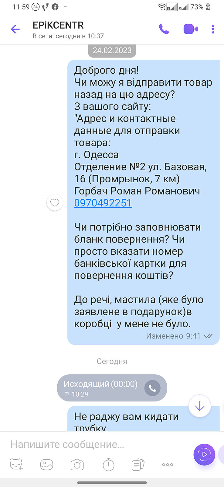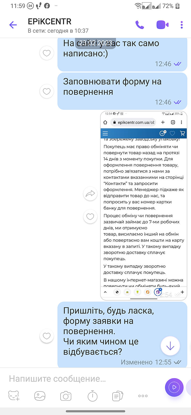 Ось переписка. Коли попросила форму повернення, перестали відповідати.