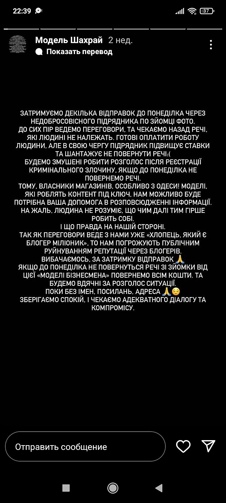 Подскажите как правильно поступить заказ из магазина инстаграм