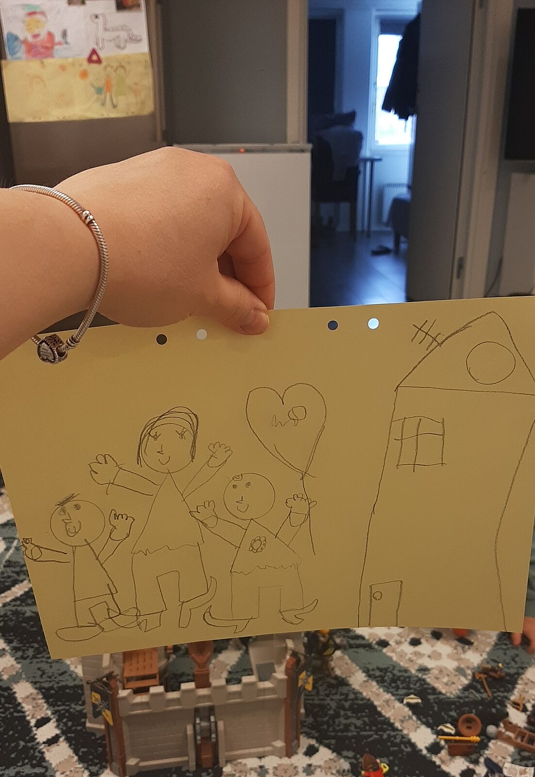 Мені нічого не подарував чоловік, напевно в обід тюльпани привезе. Дитина листівку намалювала)