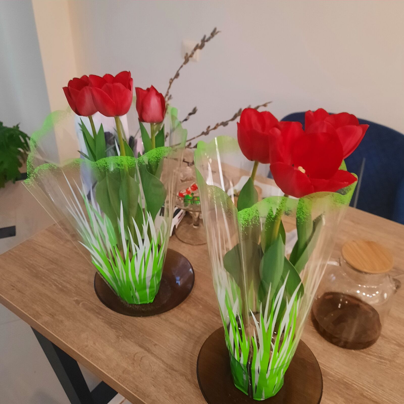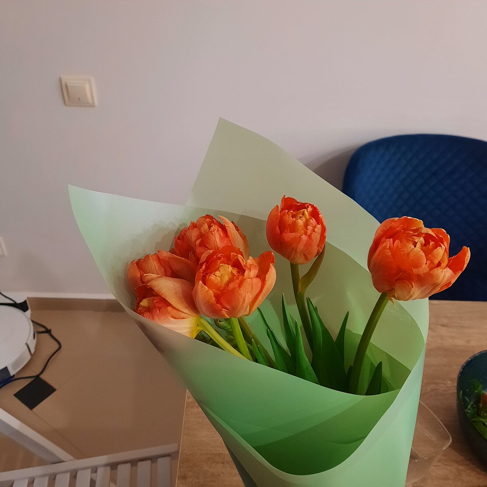 2016м и 2022м мне цветы приносил курьер, муж был на востоке. А в этом дома, я этому больше радуюсь , чем родарку и цветам