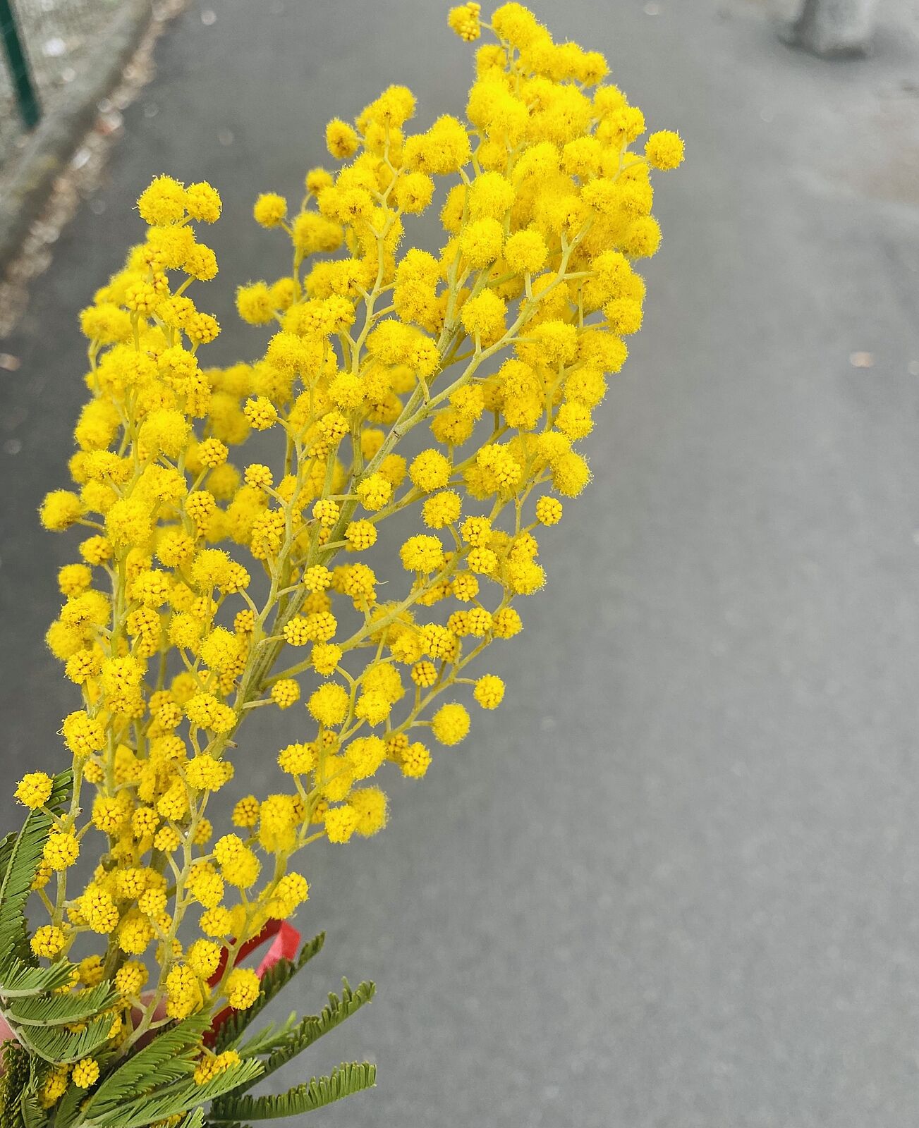 + 100 я тоже в ЕС. Еду с работы вот с такой веточкой мимозы.