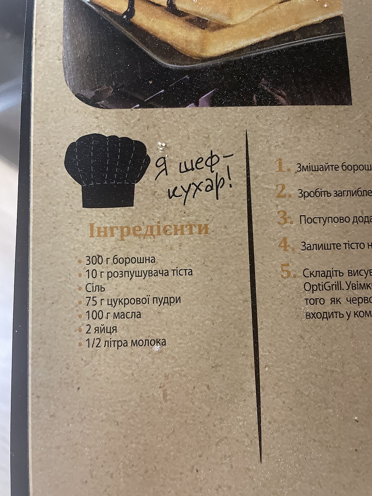 Є ось такий рецепт в книзі, але у мене є насадка для вафель