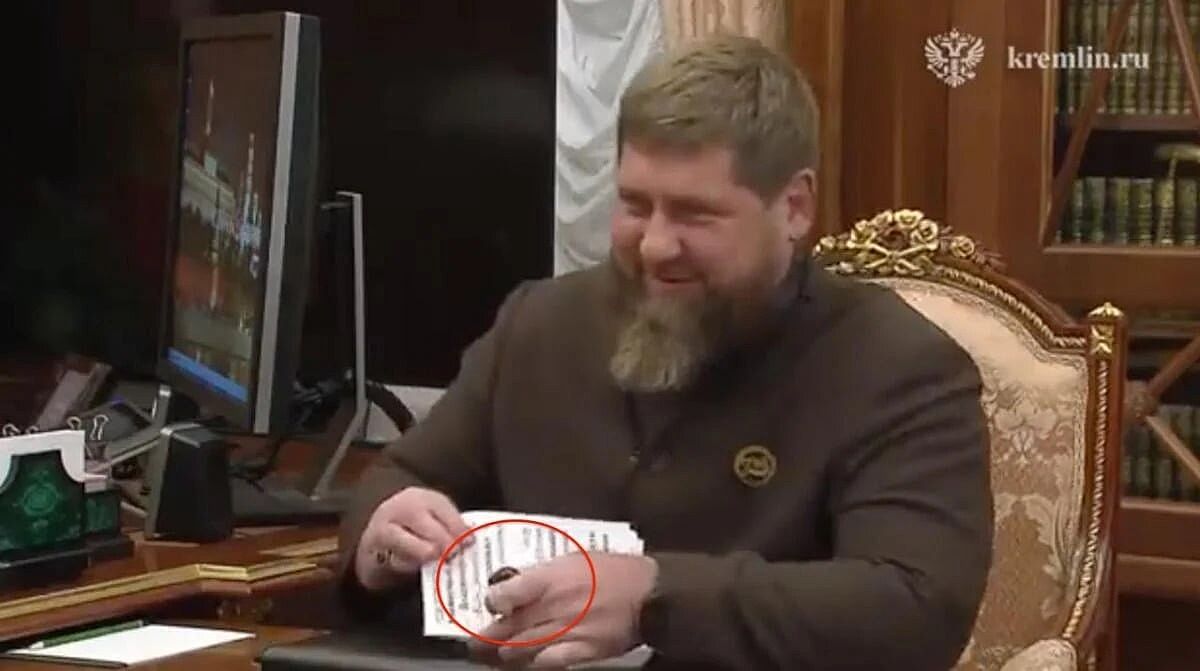кадыров опух, читает с бумажки, отдышка, с пульсометром на пальце
