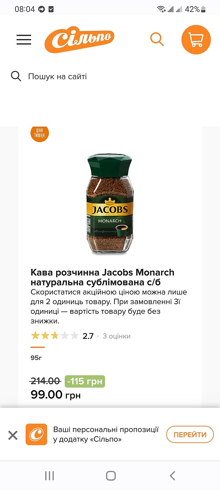 Кстати Якобс банка в сильпо 99грн по акции вместо 200
