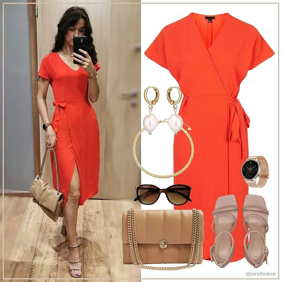 Вот еще два образа с оранжевым платьем - один люкс, один из масса. Угадаете?