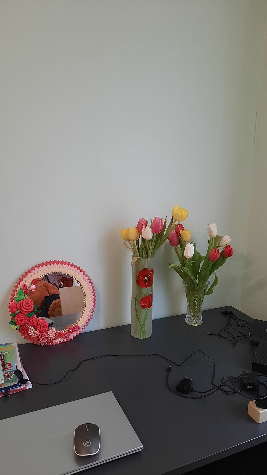 Вчора викинула, хоча треба було викинути ще в понеділок. Зав’яли вщент, і троянди, і тюльпани.