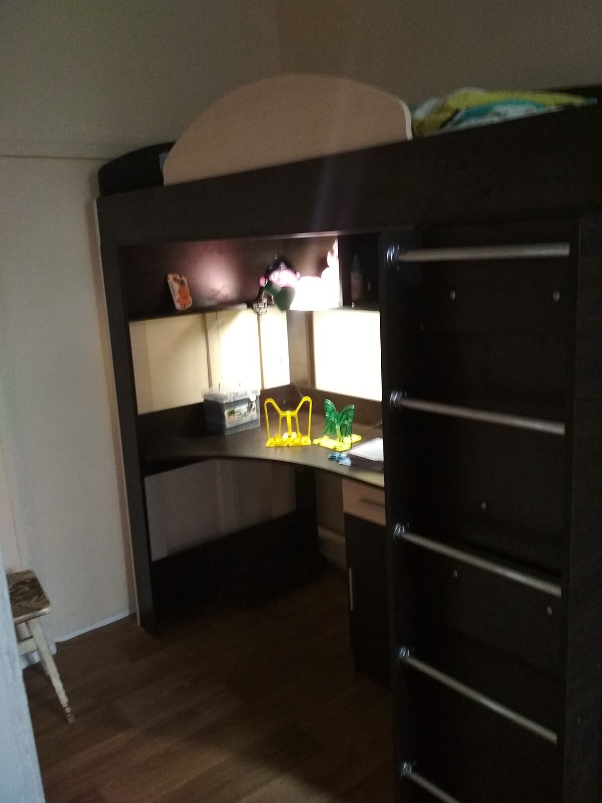У дочки такая комната , с одной стороны кровать чердак внизу которой письменный стол с другой стороны шкаф до окна